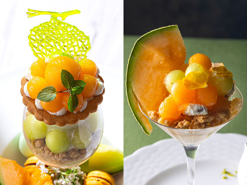 Two hotel restaurants, one serving French cuisine and cuisine other Chinese, present a "Melon Parfait" featuring a gorgeous presentation and a fresh, rich flavor. Don't miss this opportunity to enjoy this luxurious early summer treat in Minatomirai.