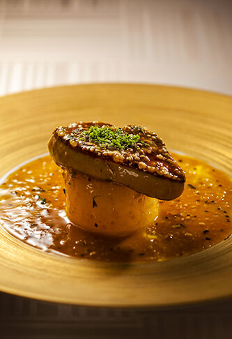 This popular menu has remained unchanged since the hotel first opened. Sautéed foie gras and stewed daikon radish are served with a rich sauce made from duck bouillon, butter, and black pepper. It is a French dish that also incorporates Japanese tastes, such as the use of soy sauce as a secret ingredient, making it an impressive dish that you will never forget once you have tried it.