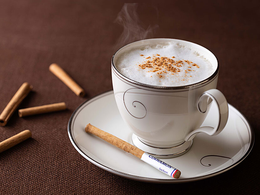 A fragrant cup of hot cafe latte with the sweetness of caramel and the spicy flavor of cinnamon. You can add a cinnamon stick to enhance the flavor to your liking.