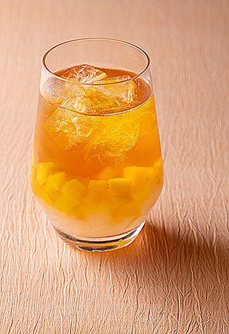 This refreshing fruit tea is topped with chunks of nata de coco and diced peaches for added texture. Its crisp flavor makes it the perfect drink for early summer.