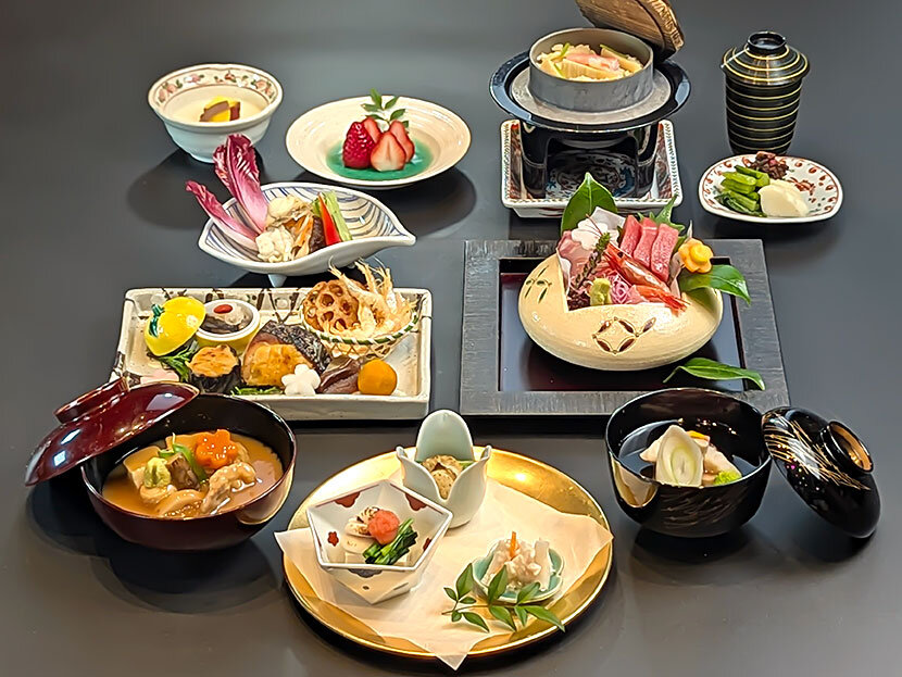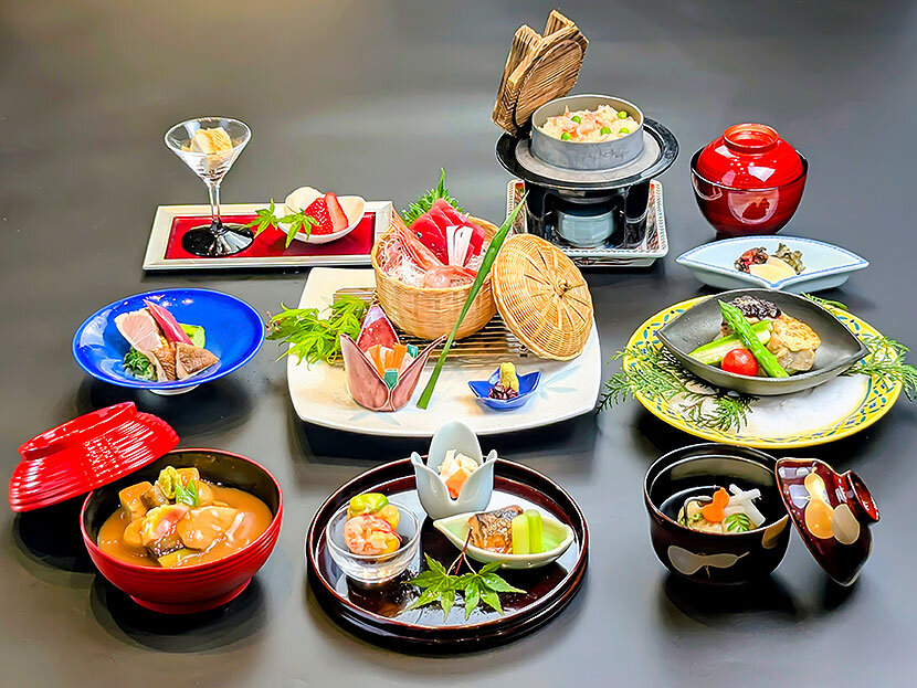 A recommended kaiseki course that makes generous use of colorful seasonal ingredients.