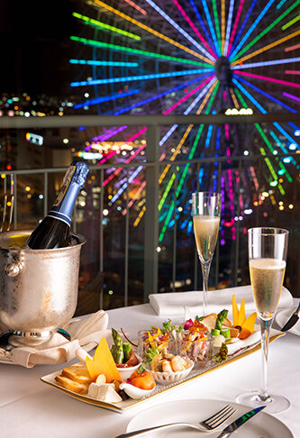横浜・みなとみらいならではの美しい夜景とともに、冷えたスパークリングワインとオードブルの盛り合わせで、おしゃれな夜を演出します。